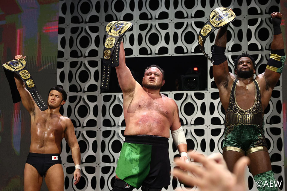 柴田&ホッブスとトリオ王者に君臨するジョーは先週、AEW世界王者モクスリーに宣戦布告。5・14イリノイ州ホフマンエステーツ大会『ビーチブレイク2025』でのAEW世界王座挑戦が決まった。