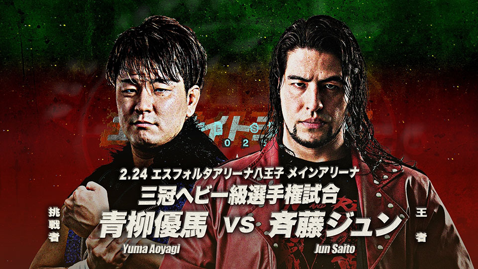 2月のビッグマッチ八王子大会のメインイベントは三冠ヘビー級選手権試合「斉藤ジュンvs青柳優馬」。第5試合のアジアタッグ選手権試合「ライジングHAYATO&安齊勇馬vs阿部史典&野村卓矢」、第3試合のGAORA TVチャンピオンシップ「宮本裕向vs黒潮TOKYOジャパン」など全7試合が行われる。