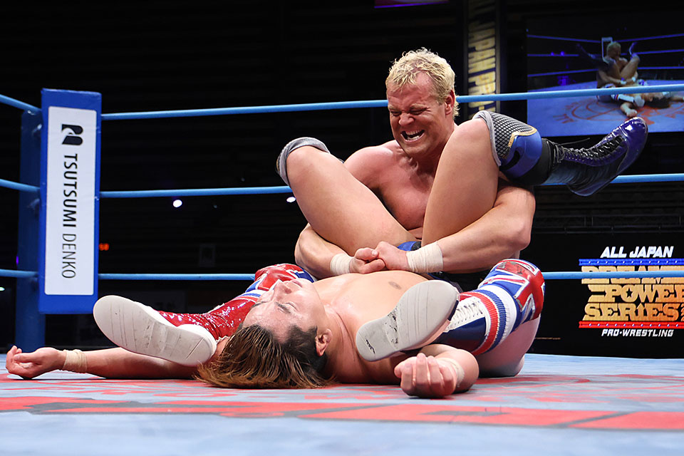『ドリームパワーシリーズ2025』大田区総合体育館(2025年3月29日) ○デイビーボーイ・スミスJr.vs青柳優馬× 青柳がチャンピオン・カーニバル前哨戦でスミスとの元三冠王者対決に苦杯。スミスに向かって「絶対に優勝決定戦に上がってくるんじゃないぞ!」と要求した。 MUSASHI欠場に伴うカード変更を受け、Bブロック・青柳とAブロック・スミスのチャンピオン・カーニバル前哨戦が急きょ組まれた。両者は青柳が勝利した昨年4月のカーニバル公式戦、スミスが至宝ベルト初戴冠を果たした昨年11月の三冠戦に続く3度目の対決となった。 キャリアの差を見せつけるようにスミスがチキンウイングアームロックで絞め上げるなど得意のグラウンドに引き込み、ヘッドロックやサーフボードストレッチなど伝統伎で青柳の動きを止めた。青柳もドロップキック、ダイビングボディアタックで反撃し、エンドゲームで捕らえたが、仕留めるには至らず。スミスはトップロープからの雪崩式ブレーンバスターで逆襲した。 青柳も回転足折り固めなど丸め込みに活路を求めるものの、3カウントは奪えず。スミスがバックドロップ、バックドロップホールドとたたみかけると、青柳もギリギリで返したが、ブルドッグボムが爆発して万事休す。3カウントが入った。 スミスが青柳に連勝し、カーニバル前哨戦を制した。最年少優勝を果たした2022年以来3年ぶり2度目の優勝がかかる青柳は暗雲。それでも「負けましたけど、こんだけデイビーボーイ・スミスJr.といい線いった勝負をしたんですから、チャンピオン・カーニバルは俺の優勝でいいでしょう、もう。来月やるチャンピオン・カーニバル公式戦一切もう意味はありません。今日僕がデイビーボーイ・スミスJr.に勝ち、優勝しました」と言い張ると、「俺は必ず決勝にいくから、デイビーボーイ・スミスJr.、お前だけは絶対に優勝決定戦に上がってくるんじゃないぞ!」と釘を刺していた。 【スミスの話】「2025年の幕開けに相応しい。チャンピオン・カーニバルの公式戦ではなかったかもしれないが、青柳に去年のリベンジを果たした。去年の1回戦、後楽園ホールでお前は私に勝ったが、それは過去の話だ。今日、私はライガーボムで正々堂々と勝利した。青柳は私を限界まで追い詰めた。お前に勝つためには、私の持っている力のすべてが必要だった。お前には回復力がある。闘志がある。間違いなく戦う魂がある。でも、お前には戦う力がない。デイビーボーイ・スミスJr.にはハングリー精神がある。決意もあるし、戦う本能がある。それが私をトップに導いてくれるんだ。私は全日本が好きだ。日本が好きだ。今夜の試合で勝利した。次の相手が誰であろうと、ライガーボムとバックドロップホールド…ガンセキオトシで勝利するつもりだ。デイビーボーイ・スミスJr.が2025年のチャンピオン・カーニバルでイチバンになる」 【青柳の話】「デイビーボーイ・スミスJr.相手にいい勝負できたんじゃないですかね。負けましたけど、こんだけデイビーボーイ・スミスJr.といい線いった勝負をしたんですから、チャンピオン・カーニバルは俺の優勝でいいでしょう、もう。来月やるチャンピオン・カーニバル公式戦一切もう意味はありません。今日僕がデイビーボーイ・スミスJr.に勝ち、優勝しました。ありがとうございます。まあ、これはさすがに冗談なんですけど、でもチャンピオン・カーニバル前に負けはしましたけども、いい準備運動をさせてもらったんじゃないでしょうか。負けましたけども。デイビーボーイ・スミスJr.はAブロックで、青柳優馬はBブロックだから。俺は必ず決勝にいくから、デイビーボーイ・スミスJr.、お前だけは絶対に優勝決定戦に上がってくるんじゃないぞ!」