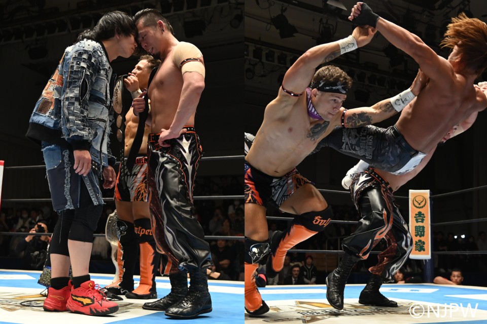 イーグルス&藤田がエックスを熱闘の末に返り討ちにして、IWGPジュニアタッグ王座V2。試合後、YOH&マスター・ワトが挑戦の名乗りを挙げた。