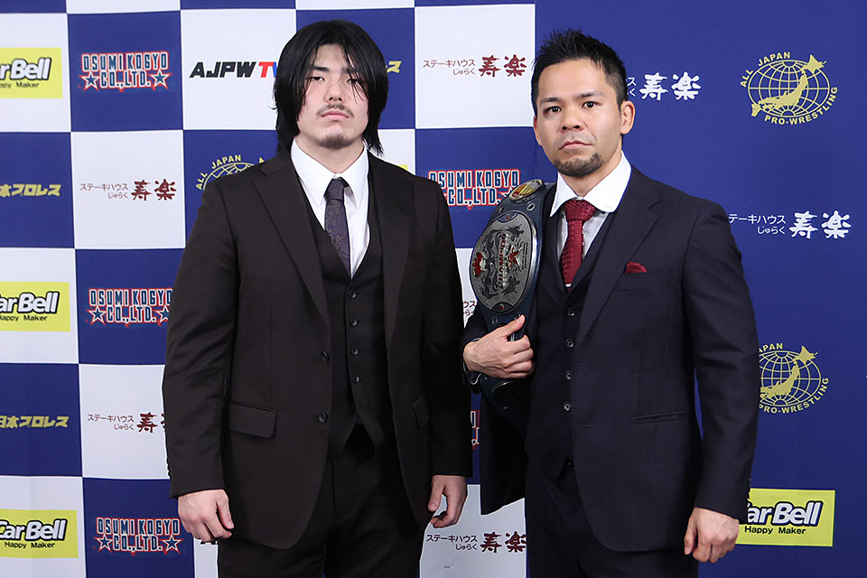 6・1仙台大会の世界ジュニアヘビー級選手権試合「吉岡世起vs田村男児」へ向けた会見が19日、東京・湯島の全日本事務所で行われた。