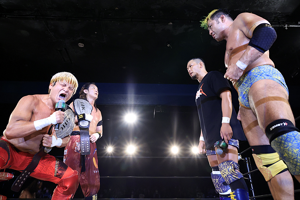 今回のタッグ王座戦も、もともと稲葉の挑戦表明がきっかけだった。結果を残せずに征矢&サクソンが挑戦することになったが、この日の新宿大会では新技・極情熱固めで勝利をおさめていた。
