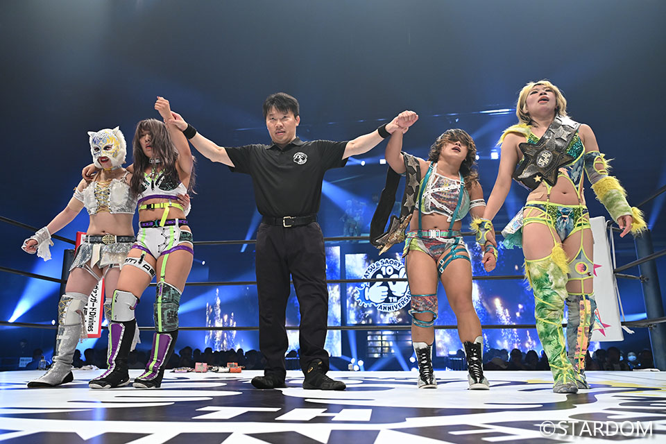 ▼キッド「ゴッデスはもちろん、アーティストだって新生STARSとして来てもいいんじゃないかなと思うし、羽南がこれを一番見てるなって今日感じました。今日はなつぽいとサオリのスペシャルデーなので、楽しく終わりたいけど、またスターダムのリングでやりましょう」