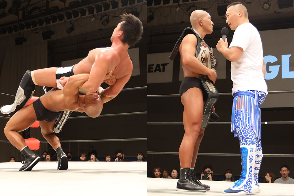 そして、「まず一番大事なGLEATの責任、バトンを受け取ったからには、来月11月3日、年間最大のビッグマッチ、横浜BUNTAIあるな。このビッグマッチで俺がG-REXのタイトルマッチをやる」と宣言。「俺は所属同士で最後決めるべきだと思うんだよ。この俺のタイトルマッチの相手、逆指名させてもらうぞ。CIMA出てこい!」と吠えた。