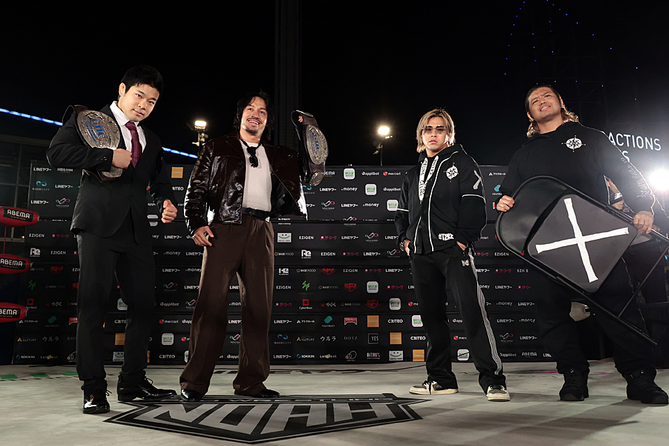 そして史上最年少で同王座戴冠を果たした小田嶋は「自分にとって初めての防衛戦。初防衛の難しさは重々承知の上です。ですが、チャンピオンになってNOAHのトップで、もっともっとNOAHを盛り上げたい気持ち、そしてNOAHの未来となった覚悟、どんどん増していくばかりです」としたうえで、「試合を通して新しい叶えたい約束も増えました。すべて叶えるために僕もダガさんも日々、練習を絶やしたことはありません。だからこそ、自信をもって伝えます。名古屋でこのTEAM 2000Xの二人を倒して、必ず日本武道館、憧れのリングにチャンピオンとして立ってやります」と初防衛と王者として元日武道館に立つことを公約した。