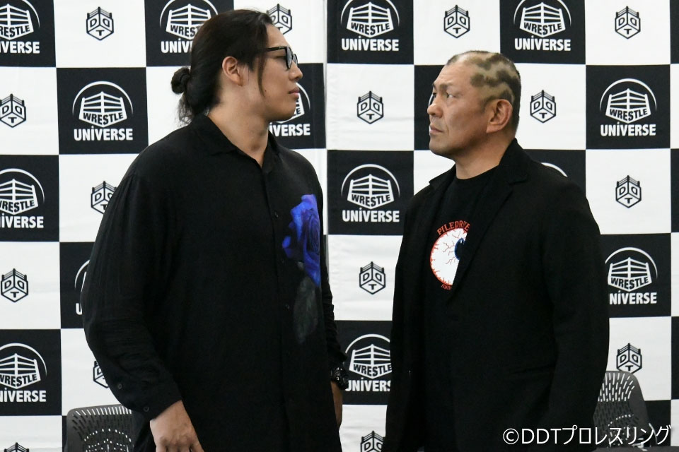 それを受けてTAKESHITAは「おそらく今プロレス界でトップの話題は竹下幸之介とモクスリーのIWGPエリミネーターマッチが挙がってくると思います。今、僕の頭はそこにはない。この鈴木みのるとの一戦、僕の頭にはそれしかない」と強調したうえで、「確かに明日、自分が負けるようなことがあると、自分にモクスリーの前に立つ資格なんてのは、僕自身もそれは認めたくないし、自分からそんな権利あげてやるよと。それだけこの試合に僕はすべてをかけて臨むつもりなので、ハナからそのつもりです」と“負けたらモクスリー戦譲渡"の構えをみせた。