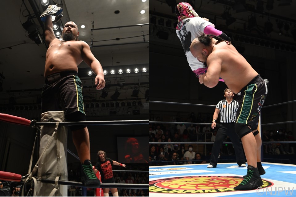 9・29神戸大会のIWGP世界ヘビー級王座戦に向けて、王者・内藤と挑戦者・オーカーンが2度目の前哨戦で激突。L・I・JとUNITED EMPIREによる8人タッグマッチが行われた。