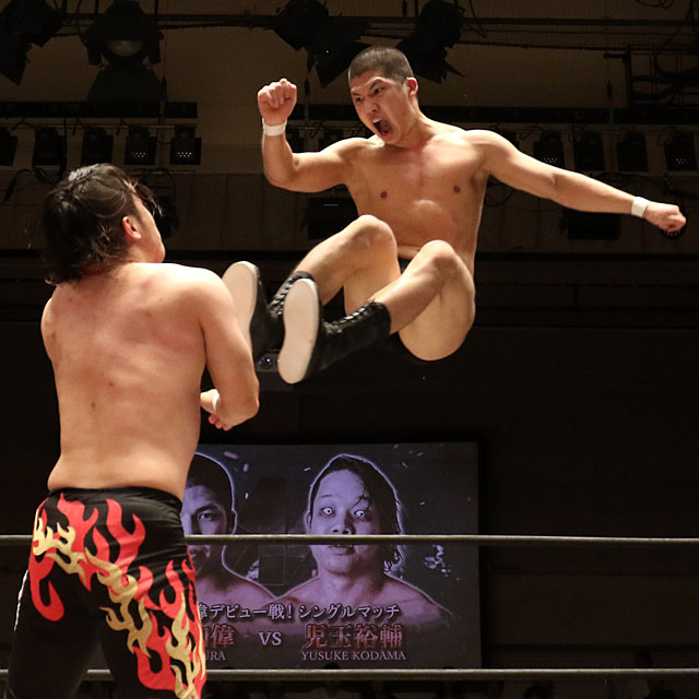 デビュー戦を迎えた藤村がスワンダイブミサイルキックやドロップキックなどを駆使して奮闘。最後は児玉に玉砕したものの、「僕はクルーザー戦線、そこに加わっていきたいし、チャンピオンになりたい」と目標を高く掲げた。