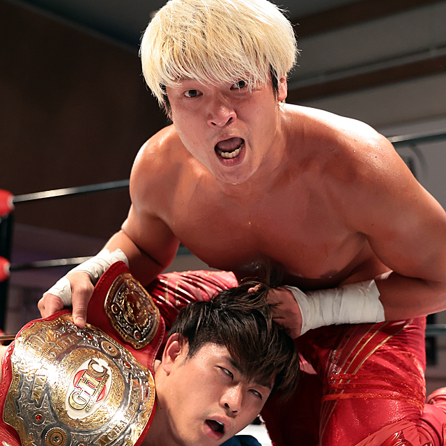 『MAN CRUSH 2021』神奈川・横浜ラジアントホール(2021年12月25日) ○拳王&中嶋勝彦vs潮崎豪&清宮海斗× 元日武道館大会のGHCナショナル王座戦に向けて王者・拳王が挑戦者・清宮を鮮烈KO。フライングヘッドを右ハイキックで空中撃墜し、「お見通しなんだよ!」と叫んだ。 12・12沼津大会では試合後に襲撃してきた清宮の“フライングヘッドバット"でKOされていた拳王。この日の横浜大会では、GHCヘビー級王者・中嶋と組んで潮崎&清宮組とダブル前哨戦で激突したが、“沼津の恨み"を晴らすべく、いきなり清宮に馬乗りになって殴りつけるなど感情を露わにした。 意地の清宮も終盤にかけて巻き返し、ここに来て多用するようになった、立っている相手に頭突きで飛びかかる“ヘディング攻撃"を軸に猛反撃。タイガースープレックスを踏ん張られても前後からの“フライングヘッド"で突っ込み、さらにはコーナー最上段からの急降下ヘディング弾で沼津の再現を狙った。 だが、読んでいた拳王はこれを右ハイキックで空中撃墜。後頭部をまともに蹴りぬかれた清宮は、そのままうつ伏せに倒れ込んでピクリとも動かない。危険と判断したレフェリーが試合を止めた。 意識もうろうの清宮の顔面にすり付けるようにして赤いベルトを見せつけた拳王は、視線の定まらない挑戦者の表情を撮影させて高笑い。「清宮、テメーのやろうとしてることはな、お見通しなんだよ! すべて俺の掌(てのひら)の上で転がされてんだよ。元日・日本武道館、俺がな、お前をまた掌の上で転がしてやるからな」と新春決戦に向けて“ヘディング封じ"と完勝防衛を予告した。 【拳王の話】「見たかオイ!? 清宮、テメーのやろうとしてることはな、お見通しなんだよ! すべて俺の掌(てのひら)の上で転がされてんだよ。オイ、清宮! 1月1日、元旦…いや、ちょっと先走りすぎたな…元旦じゃねえよな? 元日だ。元日・日本武道館、俺がな、お前をまた掌の上で転がしてやるからな。清宮海斗、1月1日、楽しみにしとけ」