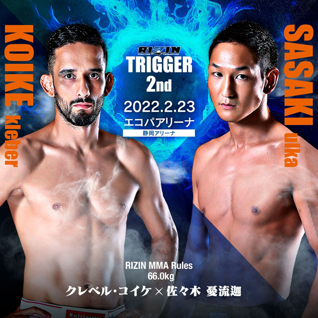 RIZINは21日、2・23袋井大会『RIZIN TRIGGER 2nd』の一部カードを発表。「クレベル・コイケvs佐々木憂流迦」など3試合が決まった。