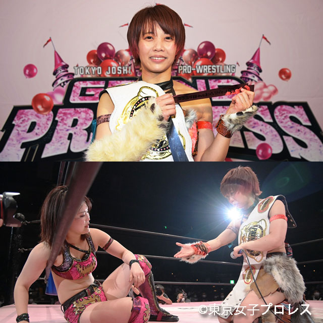 中島が2019年11・3DDT両国大会で陥落して以来、2年5ヵ月ぶりにプリプリ王座を奪還。「山下、今までで今日が一番強かった。昔は山下のことを考え方が合わないとか、強いけど認めることができないとか思ってたけど。何年も一緒に戦ってきて、どんなにプレッシャーがかかる大きなところでも怖い顔一つ見せず、強くて勝ち続けて、みんなのことを引っ張ってる山下の姿は本当にかっこよくて。嫌いだと思ってた時期もあったけど、いつの間にかすごく尊敬してた」と山下に敬意を表した中島は「だから今日、勝って山下みたいになりたかった。今日の勝ちで超えられたかどうかは分からないけど、いつか追い越してみせる。だから、これからも一緒に東京女子で戦っていこう」と涙ながらに誓った。
