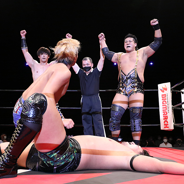 一方、敗れたZERO1軍は悔しさをあらわにしつつも、「俺らの可能性、見つけたぞ! 今は弱いかもしんねえけど、もっともっと俺たち強くなって。次はノアに乗り込むぞってぐらい強くなって、帰ってきたいと思います」(北村)、「次、火祭りありますけど、僕は必ず出場して、必ず結果残して、稲村、清宮が待っているノアに俺と北村で絶対乗り込んでやりますよ」(佐藤)と将来的なノア殴りこみを予告していた。