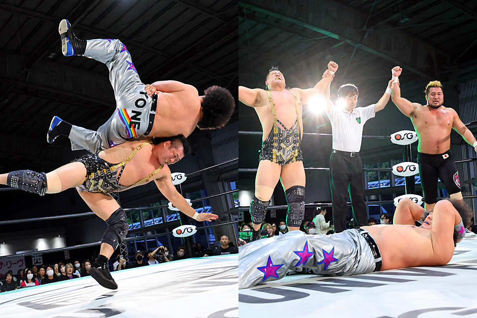 稲村が豪快無双でヨネを粉砕。6・17名古屋大会でのGHCタッグ王座挑戦を控える“THE TOUGH"北宮&稲村組が、奪取へ弾みをつけた。