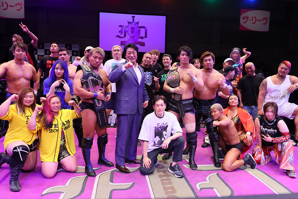 20代対決は青柳に凱歌。試合後、三冠王者・安齋とG-REX王者・田村がベルトを肩にかけて視殺戦を繰り広げる。大会プロデューサーの小橋はリングインして各選手の労をねぎらうと、「皆さん、どうでしたか? 来年Fortune Dreamも10回目を迎えます。来年も必ずやります。皆さん、必ず注目してください」と次回大会開催を約束。メインに出場した6人とともに、握り拳をつくって「オー!」と雄叫びを上げた。最後に出場選手がリングに集結し、記念撮影に。小橋は「『Fortune Dream 10』でお会いしましょう」と締めくくった。