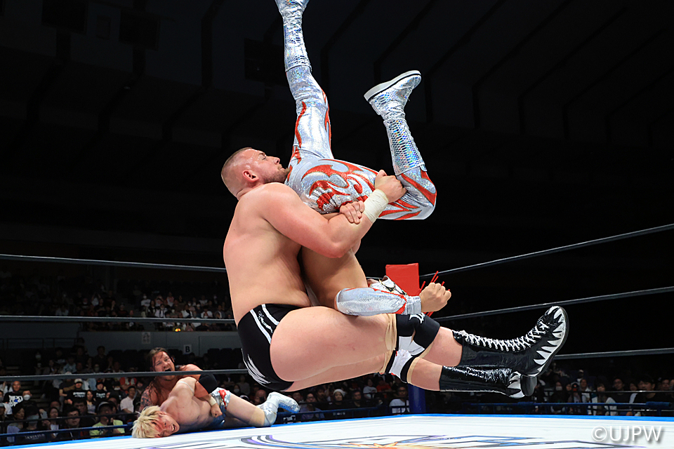 だが、最後に決めたのはゲイブ。清宮に見せつけるようにパイルドライバーをアレハンドロに3連発。さらにレッグトラップパイルドライバーでダメ押ししてレフェリーストップ勝ちを決めた。