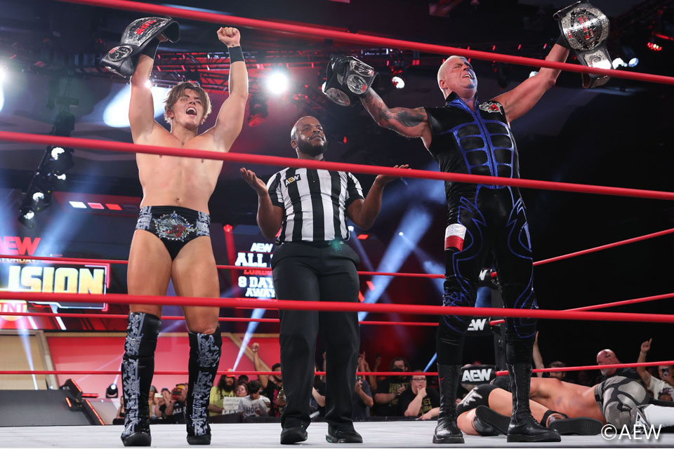 『AEWコリジョン』が現地時間17日、テキサス州アーリントンで行われ、ダスティン・ローデスがサミー・ゲバラと組んでマイク・ベネット&マット・テイヴェンからROH世界タッグ王座を奪取。ロス&マーシャル・フォン・エリックと保持する6人タッグ王座を併せてROH2冠王となった。
