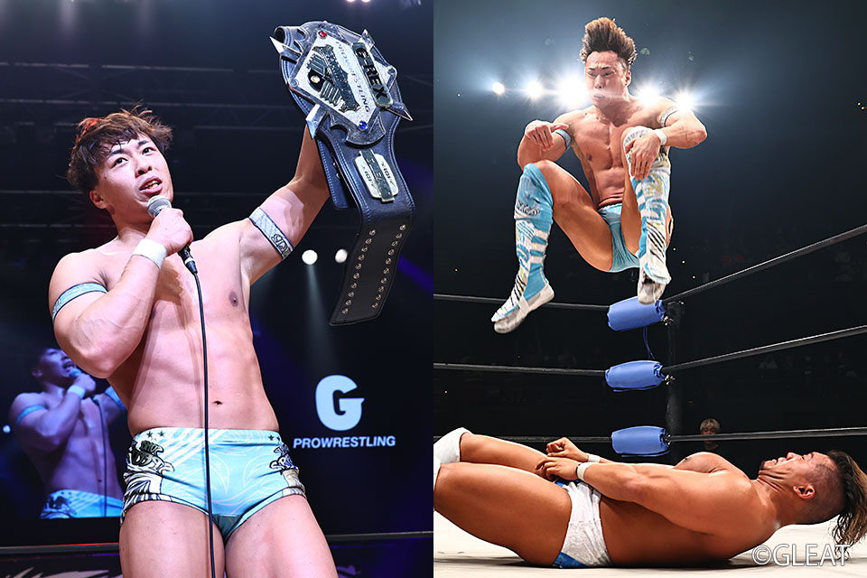 1年間ベルトを守り続けた田村が陥落。2度目の挑戦で渡辺が悲願のG-REX王座初戴冠を果たし、輝くベルトを腰に巻いた。マイクを持った渡辺は「獲ったぞ! ずっと跳ねる跳ねるって言われてきて、自分でそのチャンスをたくさん潰してきた。けど、今日ここで一番大きなチャンスをモノにすることができました!」と絶叫。「それも旗揚げからずっとGLEATを応援してくれたファンの皆様のおかげです。本当にありがとうございました」とファンに感謝した。