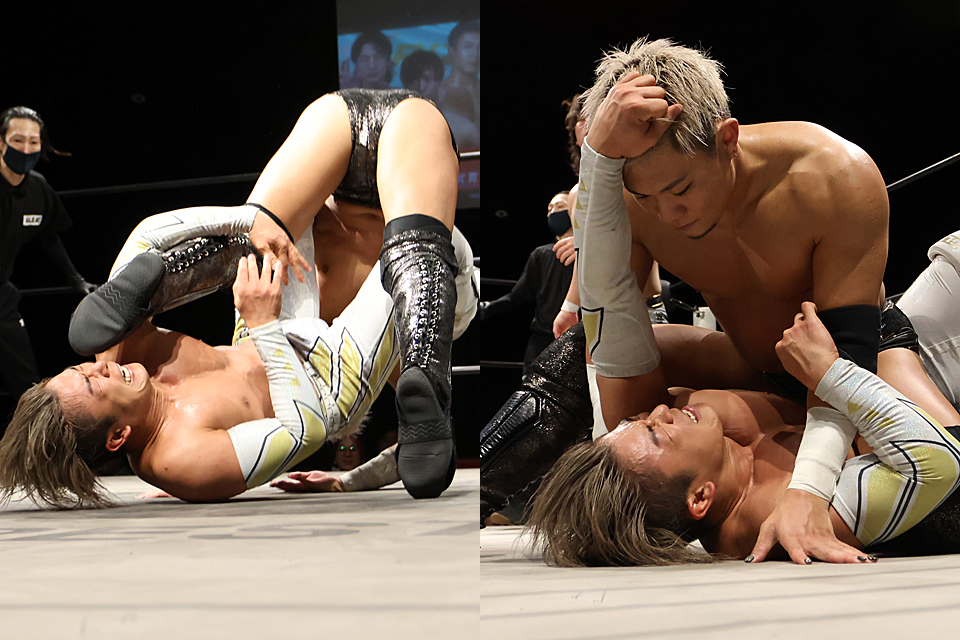 終盤、山村が大門寺のレーザーズエッジ、石田のランニングローキック、大門寺のスピアーと集中砲火を浴びたが、渡辺がドロップキックで大門寺を蹴散らす援護射撃。ならばと石田がジャンピングハイキックを山村に見舞い、顔面蹴りを繰り出したが、ガードした山村が電光石火のサムソンクラッチで丸め込んで3カウントを奪った。
