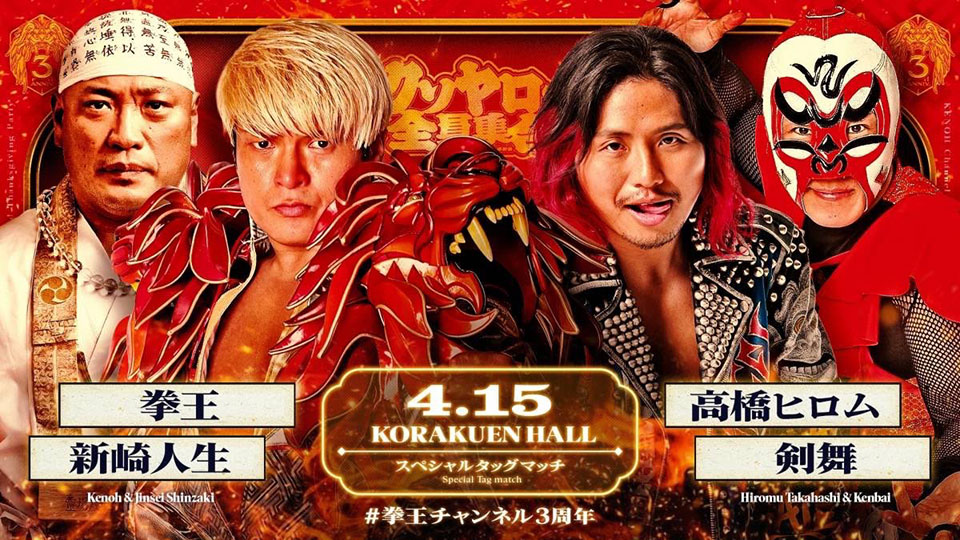 拳王チャンネル3周年を記念して行われる拳王チャンネル興行4・15後楽園大会の全カード、試合順が出そろった。