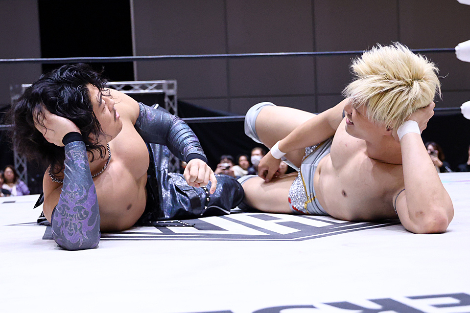 中盤過ぎにもOZAWAとハイレベルな読み合いを繰り広げ、スタンディング・シャイニング・ウィザードを放つなどして見せ場。そして最後は相手方のタダスケをシャイニング弾からのスカイウォーク・エルボー(ダイビング・フラッシングエルボードロップ)で下して前哨戦第1ラウンドを制してみせた。