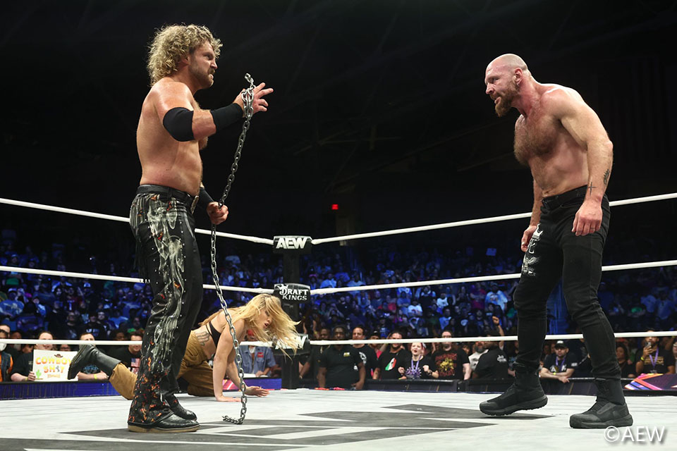 AEWダイナマイトが現地時間9日、テキサス州ガーランドで行われ、AEW世界王者ジョン・モクスリーが前哨戦を制したものの、サモア・ジョーの加勢を得たハングマン・アダム・ペイジがバックショットラリアットで報復。テキサスデスマッチによる王座戦へ向けてチェーンを手に挑発した。一方、スワーブ・ストリックランドは『オール・イン・テキサス』でタッグ対決するヤングバックスの愛車・リムジンをシャベルカーで破壊した。