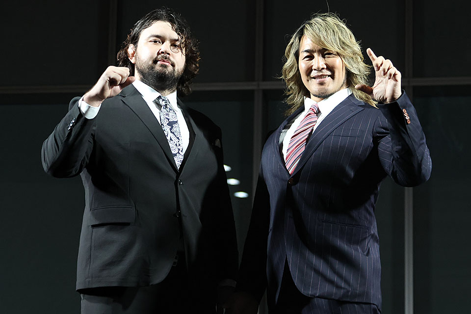 棚橋弘至、ウルフ アロンが30日、東京・新宿の歌舞伎町シネシティ広場で公開会見。来年1・4東京ドーム大会での引退試合へ向けて棚橋がシングルマッチを希望すれば、デビュー戦を控えるウルフは「どんな対戦相手と戦うってなっても、全身全霊で倒しにいくだけ」と意気込んだ。