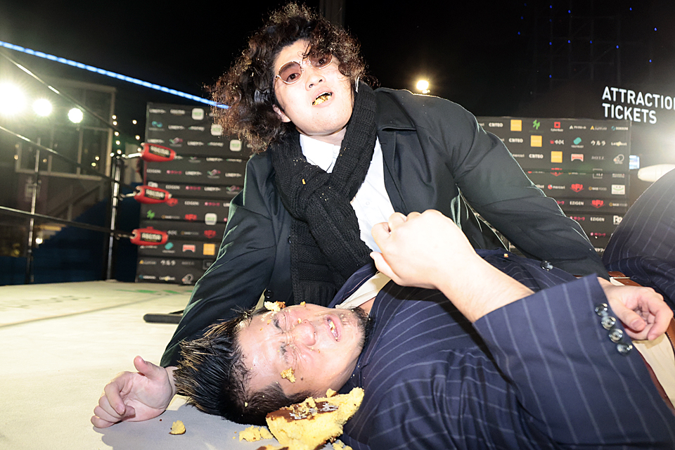 さらには倒れ込むYoshikiの口に「ちゃんと食えよ!」と改心カステラを押し込み、自らも口に含んでから狂気の口移し。ブーイングのなかで狂気の表情を取り戻し、悠然と東京ドームシティの雑踏のなかに姿を消した。決戦前1ヶ月を切ったタイミングで改心モードは終了…。元日武道館には本来の“黒OZAWA"が姿を現すことが確実となった。