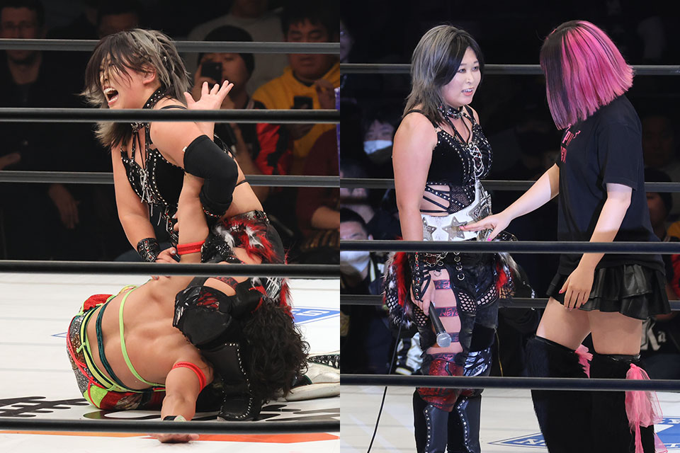 小波は「お姉さんだろうが! まあ、いい。吏南が今日勝ったことも、今年どれだけ活躍してきたかも、私は隣でずっと見てきた。だから、次、吏南と試合をする時、このベルトを懸けてやっても私は面白いと思うな」と対戦に同意して、握手を求める。吏南は応じず、顔面にツバを吐きかけて挑発してリングをあとに。小波は「おい、2度目は許すけど、3度目はねえからな。まあ、いい。今日私はこのベルトを初防衛した。そして、どんなヤツが来ようがどんなことをされようが、必ずこの先も、来年も防衛し続ける」と豪語すると、「スターダム、ジ・エンド」と締めくくった。